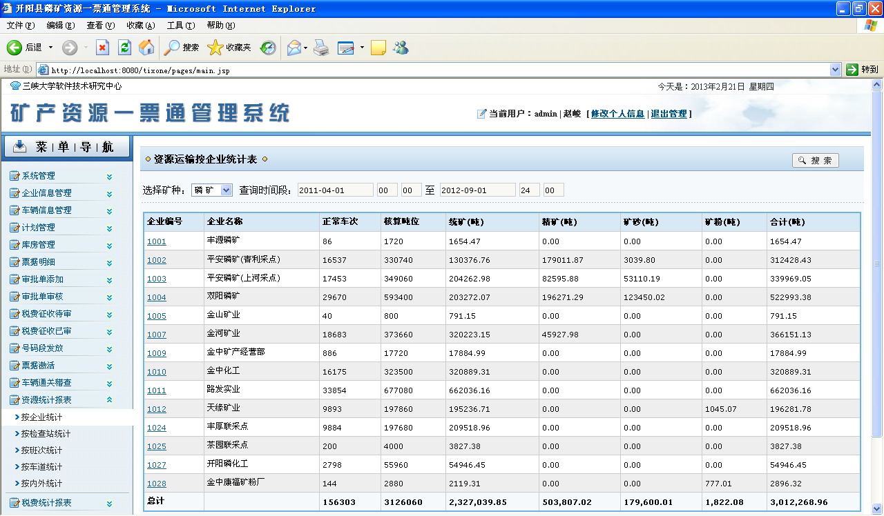 《矿产资源一卡通管理系统》是一套致力于解决矿产资源领域长期存在私自开采、黑矿买卖、运矿车辆超载严重、计量混乱、销售价格制定体系不统一、税费流失严重等现象的软硬件集成系统。该系统是在长期深入调研国土、税务、环保等相关职能部门以及矿山企业的基础上集合现代化信息管理技术,以数字采集、定位、视频、网络相结合的方式研制开发,它涵盖了矿产资源运销计划管理、准运单发放、税费征收、车牌自动设别、称重防作弊、视频图像抓拍及录像、异常通关报警等系统功能,可实时对企业在各时间内运输矿产品通关总量以及产生税费进行分矿种、分品味进行统计。实现对矿产品开采、运输、销售等各个环节全过程综合监管,有效解决税费征管、治超治限、安全生产监管中存中的系列问题。