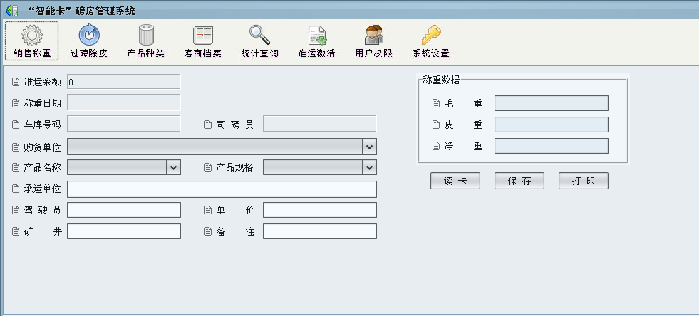矿山企业运销子系统“车辆运输卡”是当运输车辆在磅房过磅时记录车牌、矿重、品味、发货企业、发货时间、收货企业、内外运等信息的电子标签,车辆经过矿产品检查站时,用于自动准确识别货车以及运输信息。