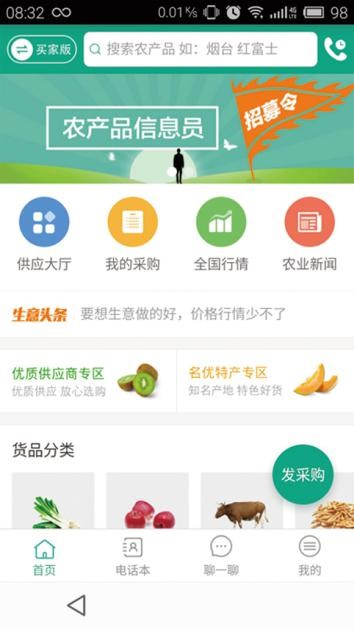 网站主要为农产品经营双方提供全面的信息服务(供求信息、价格行情、匹配撮合)、流程服务(交易双方在线管理自己的业务流程和商务关系), 以及基于大数据的衍生金融等增值服务。