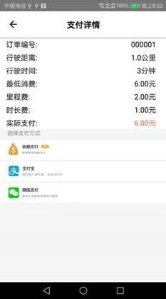 3、订单支付:当行程结束后,用户可以选择相应的方式进行订单支付,医院工作人员可以额外选择余额支付。普通乘客选择支付宝/微信支付;