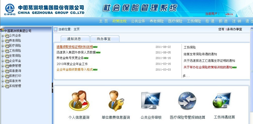 自2010年起公司为葛洲坝集团开始研发集团公司的社会保险信息管理系统,经过多年完善已经成为一套成熟的应用系统,涵盖社会保险信息方方面面并可根据国家政策随时调整完善系统,也支持手机客户端实施查询,对同类型大中型企业社会保险信息管理具有一定推广价值。